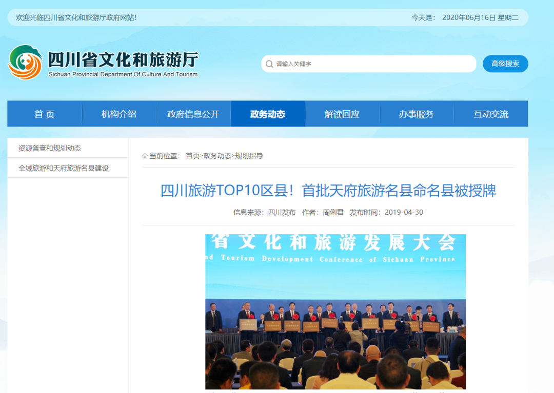 2019年2月22日,四川省文化和旅游廳召開新聞通氣會(huì),對(duì)省委辦公廳、省政府辦公廳印發(fā)的《關(guān)于開展天府旅游名縣建設(shè)的實(shí)施意見》(以下簡(jiǎn)稱《意見》)進(jìn)行通報(bào)并解讀。