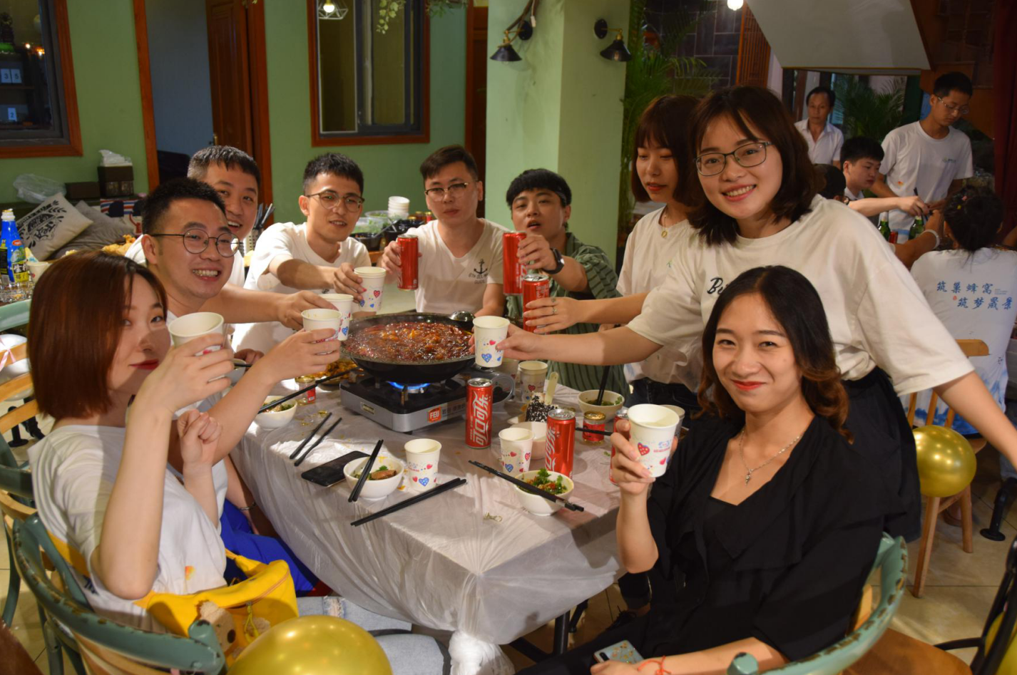 晚宴時,大家在一片歡聲笑語中共飲杯中酒,酒喝干,再斟滿,這是一路走來的情誼。伴隨著祝福,伴著笑語,伴隨著熱騰騰的火鍋,周年慶的歡樂時光也即將圓滿落幕,飯后,大家分別組成興趣組,有唱歌、有棋牌、游戲,大家一起將慶典延續(xù)到了落幕。