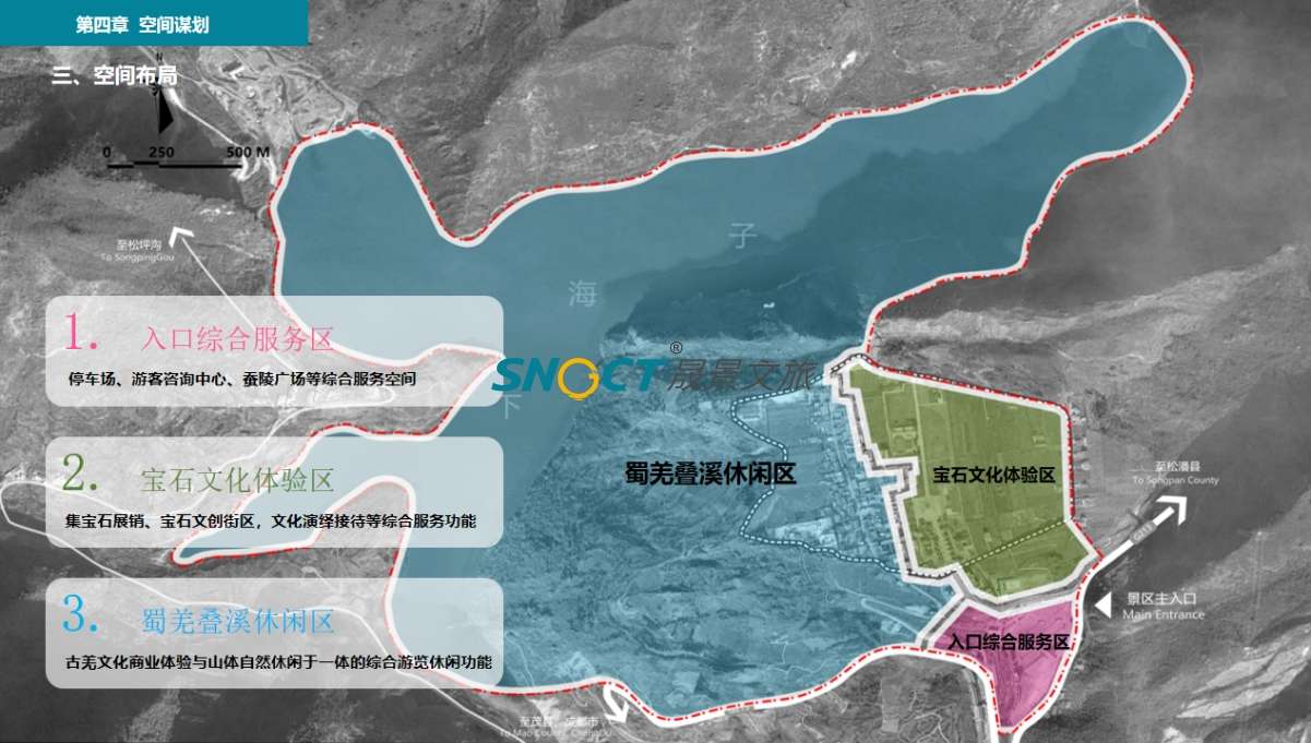 疊溪鎮(zhèn)位于阿壩藏族羌族自治州茂縣西北部,岷江上游,緊鄰國(guó)道213,毗鄰松坪溝景區(qū),距離茂縣縣城56公里。鎮(zhèn)政府駐地較場(chǎng)村,平均海拔2325米。疊溪鎮(zhèn)有地震遺跡、地質(zhì)奇特景觀、疊溪海子等自然景觀,悠久深厚的古蜀蠶叢文化、原始古樸的羌民族風(fēng)情等。該項(xiàng)目策劃范圍涵蓋疊溪古鎮(zhèn)片區(qū)及疊溪下海子,總策劃面積2.12平方公里,約3180畝,其中陸地面積1.1平方公里,水域面積1.01平方公里。