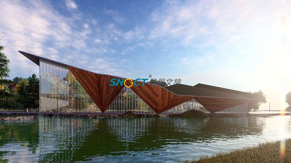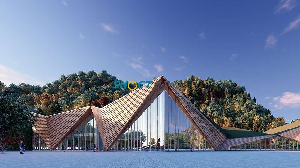本項(xiàng)目建筑面積約2500平方米。方案設(shè)計(jì)上提取奶子溝“彩林、冰山、河川、生態(tài)”的印象標(biāo)簽,以“融合”為核心,將其貫穿起來,形成了“水為形,山為勢(shì),山川一體”的設(shè)計(jì)概念,對(duì)標(biāo)國(guó)際冰川彩林旅游度假目的地的設(shè)計(jì)要求。